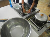 5年生は、はじめての調理実習でホウレンソウを茹でました。初めてのことなので、コンロに火をつけるのにも苦労してましたが、最後には茹で上がったほうれん草を冷水にさらしておいしく食べました。この後は、ジャガイモと卵を茹でる学習に取り組みます。