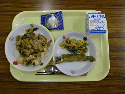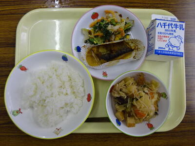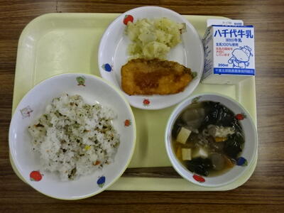・彩なめし ・鮭フライ ・ジャーマンポテト ・けんちん汁 ・牛乳