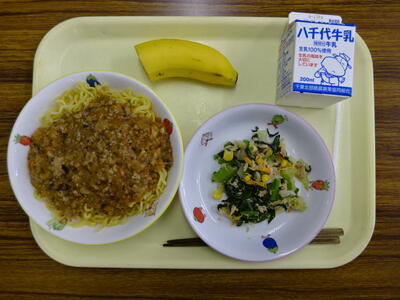 ・ジャージャー麺 ・ツナサラダ ・バナナ ・牛乳