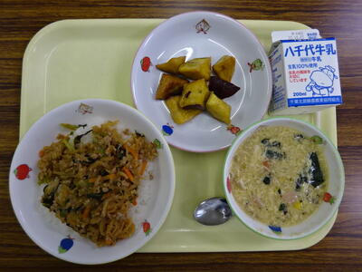 ・ビビンバ ・大学いも ・卵コーンスープ ・牛乳