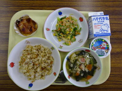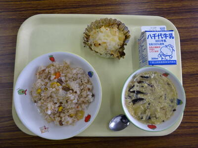 ・ツナピラフ ・チーズポテト ・卵スープ ・牛乳