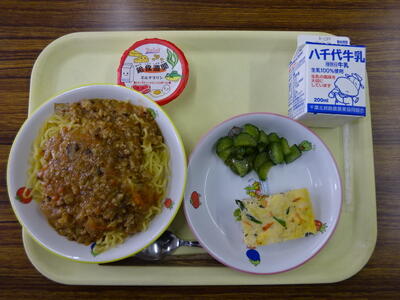 ・ジャージャー麺 ・擬製豆腐 ・中華きゅうり ・給食習慣ミルクプリン ・牛乳