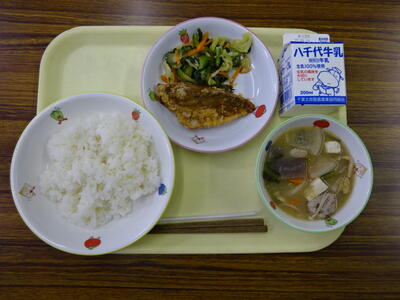 ・ご飯 ・鯵のピリ辛揚げ ・田舎汁 ・和風サラダ ・牛乳