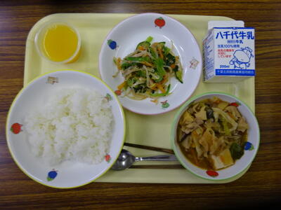 ・ご飯 ・ジャーチャン豆腐 ・ツナナムル ・オレンジゼリー ・牛乳