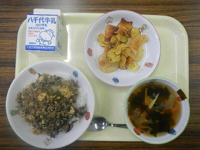 ・ビビンバ ・わかめスープ ・野菜チップス ・牛乳