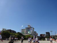 1年生が、生活科の授業の一環としてしゃぼん玉遊びに取り組みました。