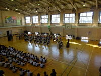 新浜小学校、行徳小学校、第七中学校の3校による地区別音楽会が、3年ぶりに第七中学校の体育館で実施しました。今回は、保護者の参観はなく、3校がお互いの演奏を聴きあうとともに、体育館いっぱいに広がって合同での演奏を楽しみました。新浜小学校吹奏楽部は今回保護者の参観ができなかったので、前日の26日に体育館で保護者向けのミニコンサートを行いました。