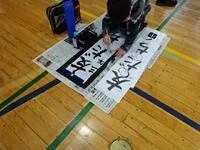 1,2時間目に4年生、3,4時間目に5年1組2組が書初めを行いました。体育館に集まり、書くことに集中しながら書初めを行っていました。