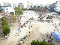 今週は、昼食の時間に校庭を開放して新浜幼稚園の皆さんが凧あげに挑戦しています。そこに、給食を早めに食べ終えた5年生が合流して凧あげのお手伝いをしてげました。からまった糸をほどいてあげたり、「上がってるよ」と声をかけてあげたり、幼稚園児との交流ができました。