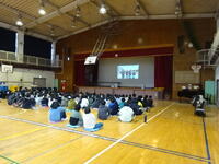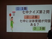 7中の生徒会役員の皆さんが中学校生活についての説明に来てくれました。説明では、部活動の動画を見たり、学校生活についてのクイズを出してくれました。最後には、質問コーナーを設けていただきました。子ども達からは、「学習で難しくなるのはどんな教科ですか」「給食はおいしいですか」など、たくさんの質問ができました。