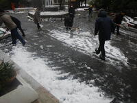 昨晩は大雪でした。今日は、子ども達も雪遊びを楽しみにしていたと思いますが、今日の気温が高かったこともあり雨になりかなり雪が溶けてしまいました。それでも、子ども達は端などに積もった雪をかき集め雪玉を作ったりして、本当に楽しそうに遊んでいました。朝は、子ども達の安全のために、先生方で除雪作業をしました。
