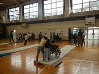 3年1組と2組の児童が、福祉協議会の方とボランティアで手伝っていただいた民生児童委員、行徳三丁目自治会の方々の協力で、車いす体験とアイマスクでの歩行体験をしました。2人組で実際に目を隠してサポートしながら階段を上がったり、4人1組でマットの上などで車いすを押す体験をしました。今回の体験を通して障害を持っている方の思いに少しでも寄り添うことができるといいと思います。