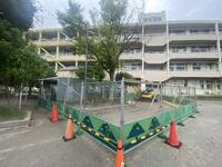 ウサギがいなくなってから5年以上たち、校庭の飼育小屋も老朽化してきており、今後危険な事も考えられたので、市川市にお願いしてこの飼育小屋を撤去してもらうことになりました。解体作業が1日からはじまりました。