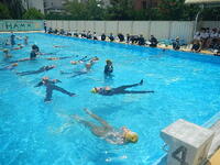 延期になっていた着衣水泳を実施しました。段階的に、服を着て水に入った時の感覚を体験した後、実際に浮いてみる活動、またペットボトルを使って浮く活動に取り組みました。児童の中には、とても上手に浮いている人もいましたが、「服を着ていると体が重い」ということを体験し、不用意に水の中に入らない、おぼれている人がいたら救助を呼ぶなどの基本的な対応についても学びました。
