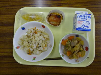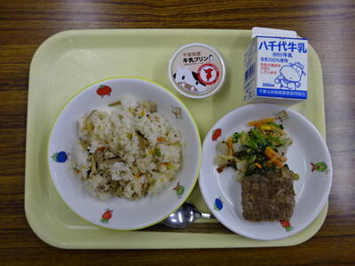 ・五目ごはん ・さんが焼き ・ごまあえ ・千葉県産牛乳プリン ・牛乳