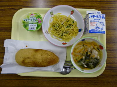 ・きな粉揚げパン ・ラーメンサラダ ・豆腐肉団子スープ ・マスカットゼリー