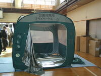 非常時の食料の配付、プライベートスペースの設置、防災トイレの組立て、WIFI環境の提供など、それぞれのチームに分かれて活動し、体育館はあっという間に避難所としての機能を持つ場所となっていました。