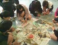 爪をつけて、番号の書かれた楽譜をみながら、「さくら さくら」のメロディーを奏でました。