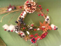 みずがき隊の皆さんは、松ぼっくりやどんぐり、植物の種などたくさんの自然のものから作った飾りを用意してくださり、子供たちは自分で綯った縄に、思い思いに飾りをつけ、たった一つのオリジナルリースを完成させ、とてもうれしそうでした。