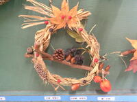 最後は、稲刈りをしたあとの「わら」を使ってリースづくりをしました。