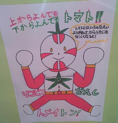 給食委員さんは、新浜小の子供たちが苦手な食材についてアンケートを取り、それを克服するために作ったキャラクター「にいはまレンジャー」を発表してくれました。