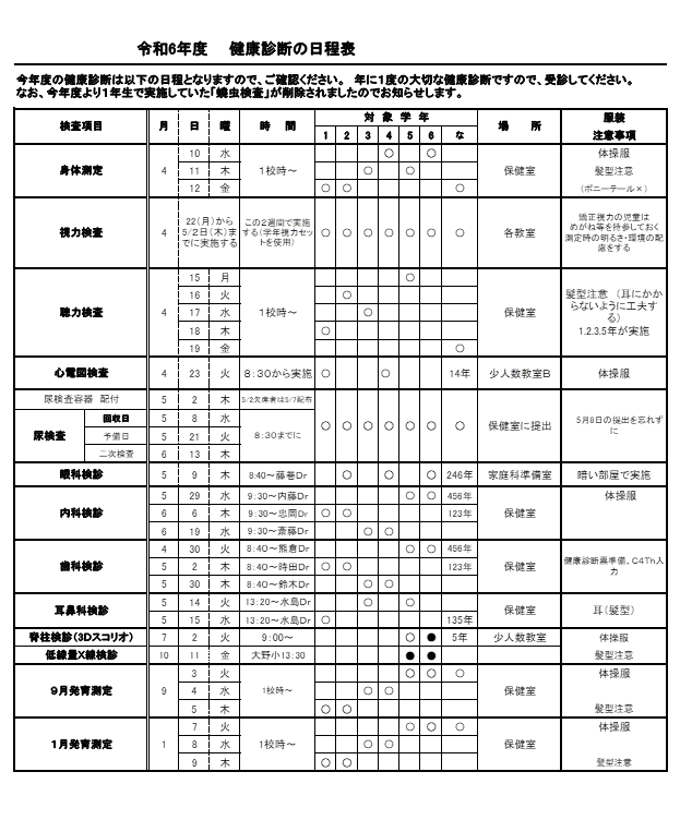 それぞれの健康診断について
