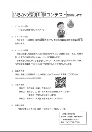 いちかわ環境川柳コンテスト.pdf市川市環境部からのお知らせです。