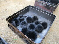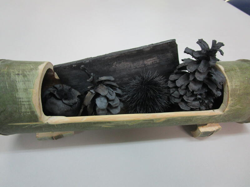 最後に「花摘み」といって、炭にした様々なもの(松ぼっくり、栗、柿など)を竹の皿に
