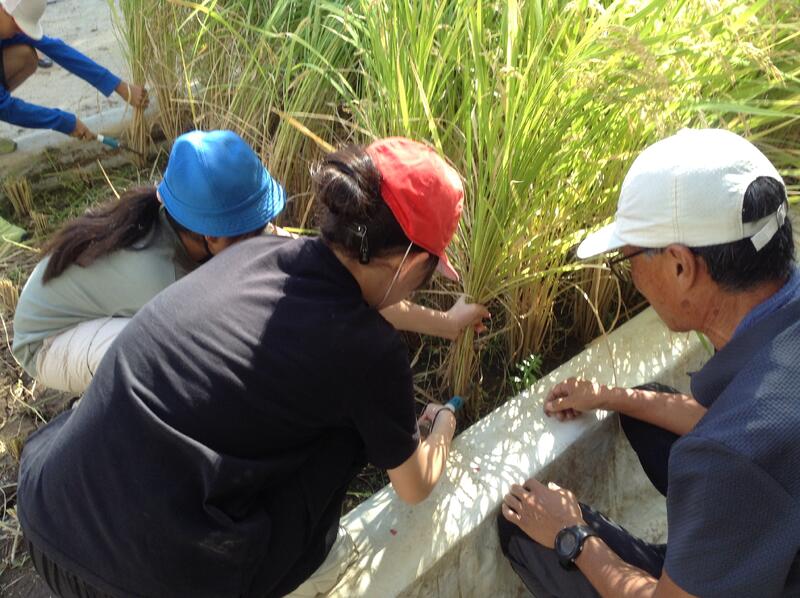 大柏小学校をあとにした5年生は、まず大山千枚田でグループに分かれ体験活動を行いました。