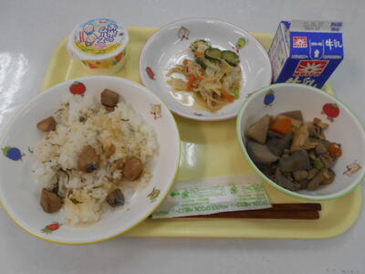 「ごはん」「田舎汁」「おからコロッケ」「礒和え」「牛乳」
