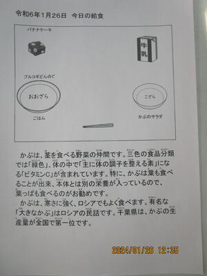 1月24日(水)本日の給食