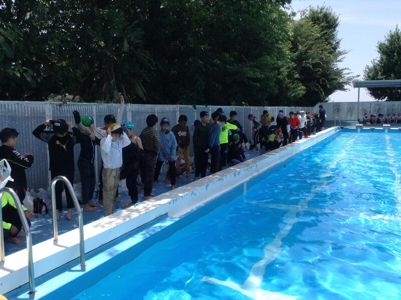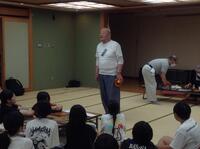訓練場見学では、実際に訓練を行っている様子を見せてもらいました。本当の火事の現場を想定した訓練で、消防士の素早い行動に、子どもたちは大変驚いていました。