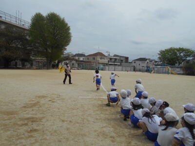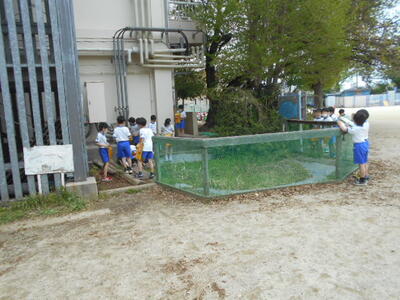 訓練場見学では、実際に訓練を行っている様子を見せてもらいました。本当の火事の現場を想定した訓練で、消防士の素早い行動に、子どもたちは大変驚いていました。