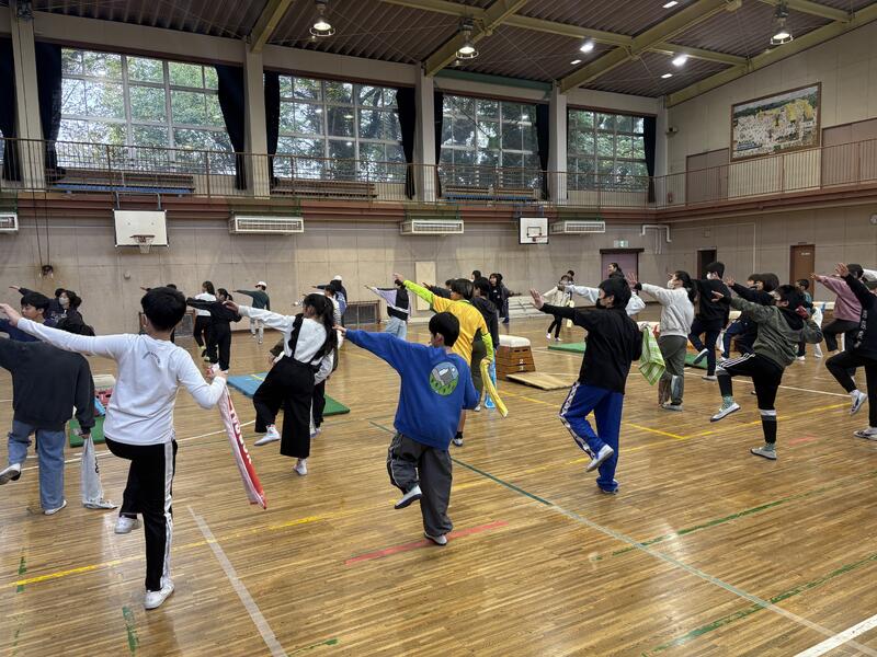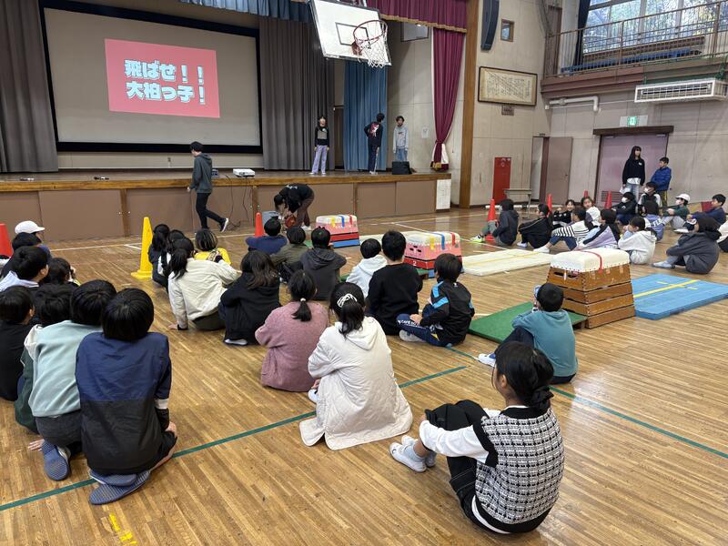 ボールを遠くに飛ばすコツを教えてもらい一生懸命取り組んでいました。