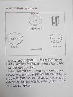 5月9日(火)本日の給食 投稿日時 : 2023/05/09 大柏小学校管理者 「麦ごはん」「ニラ納豆」「塩肉じゃが」「ワカサギのごま揚げ」「牛乳」 Tweet {{options.likeCount}} {{options.likeCount}} {{options.unlikeCount}} {{options.unlikeCount}} 0 コメント