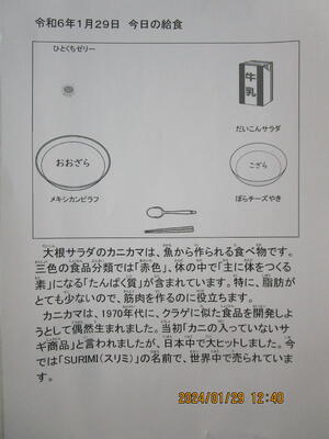 1月29日(月)本日の給食 投稿日時 : 2024/02/15 大柏小学校管理者 Tweet {{options.likeCount}} {{options.likeCount}} {{options.unlikeCount}} {{options.unlikeCount}} 0 コメント