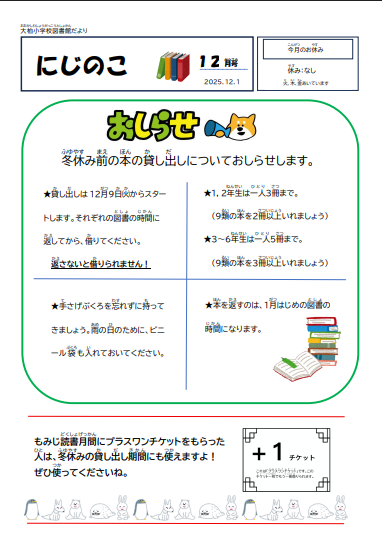 図書館だより 12月号 投稿日時 : 11:59 大柏小学校管理者 PDFはこちら⇒ 図書館だより12月号2025.12.pdf Tweet {{options.likeCount}} {{options.likeCount}} {{options.unlikeCount}} {{options.unlikeCount}} 0 コメント