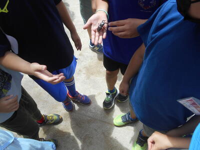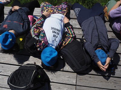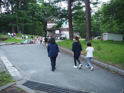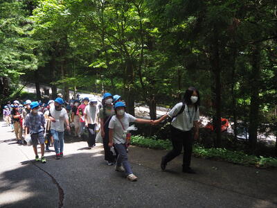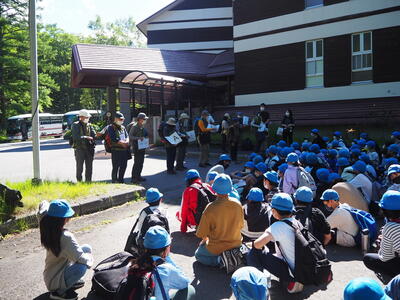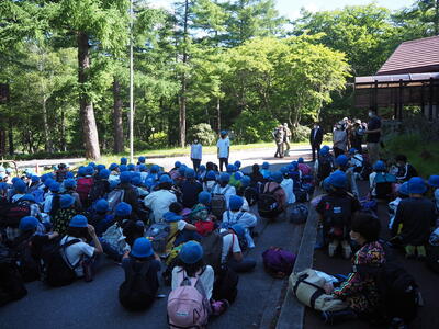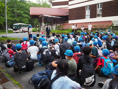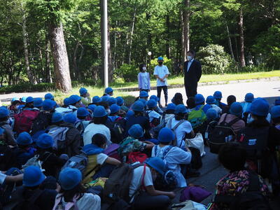 訓練場見学では、実際に訓練を行っている様子を見せてもらいました。本当の火事の現場を想定した訓練で、消防士の素早い行動に、子どもたちは大変驚いていました。
