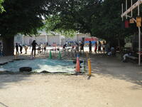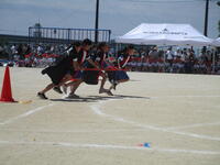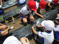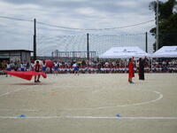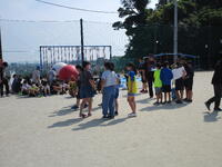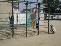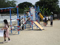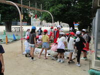 訓練場見学では、実際に訓練を行っている様子を見せてもらいました。本当の火事の現場を想定した訓練で、消防士の素早い行動に、子どもたちは大変驚いていました。