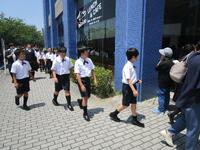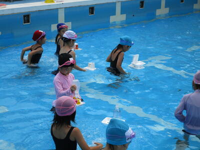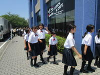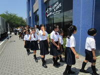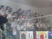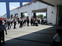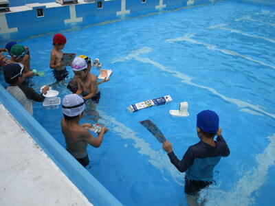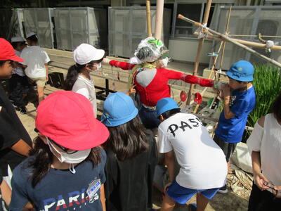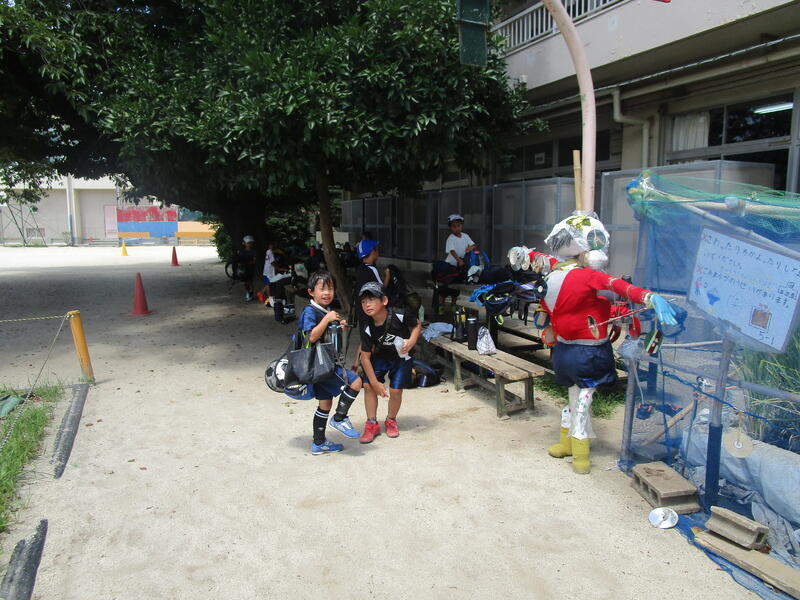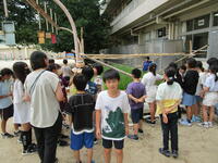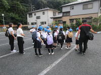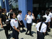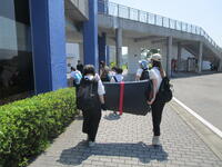 訓練場見学では、実際に訓練を行っている様子を見せてもらいました。本当の火事の現場を想定した訓練で、消防士の素早い行動に、子どもたちは大変驚いていました。