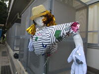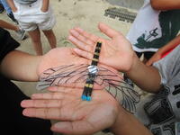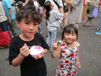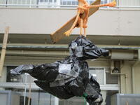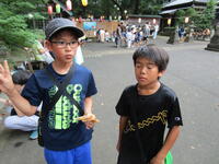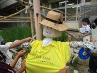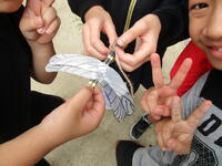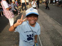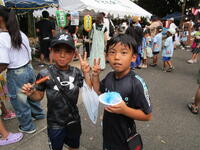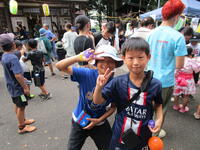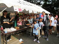 防火衣着装体験では、消防士さんが実際に普段着装している防火衣を、わずか30秒で着替えるという早業を披露していただきました。その後、子供用の防火衣を実際に着せてもらい、ヘルメットの重さや着装の難しさを体験しました。