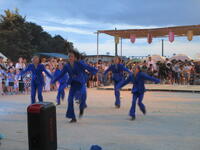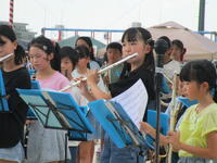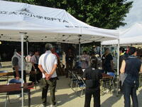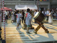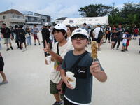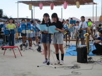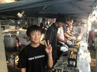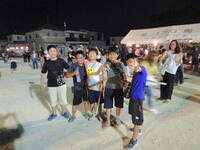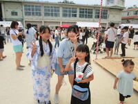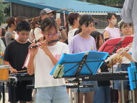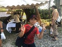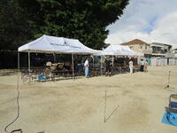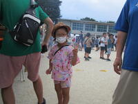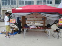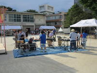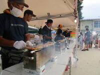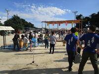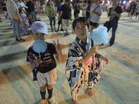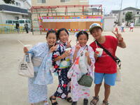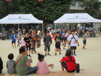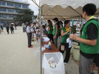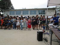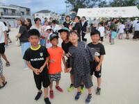 防火衣着装体験では、消防士さんが実際に普段着装している防火衣を、わずか30秒で着替えるという早業を披露していただきました。その後、子供用の防火衣を実際に着せてもらい、ヘルメットの重さや着装の難しさを体験しました。