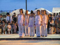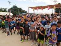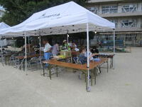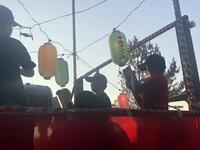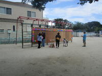 訓練場見学では、実際に訓練を行っている様子を見せてもらいました。本当の火事の現場を想定した訓練で、消防士の素早い行動に、子どもたちは大変驚いていました。