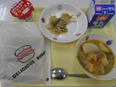 「フィリーズ ステーキサンド」「ABCスープ」「ブロッコリーの胡麻和え」「いよかんゼリー」「牛乳」