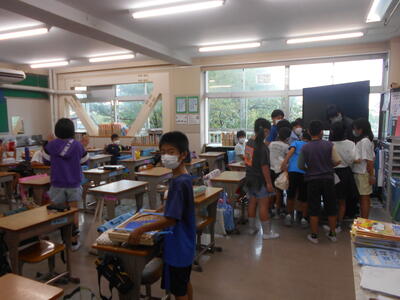 9月1日 始業式 各学級の様子 投稿日時 : 2022/09/01 大柏小学校管理者 朝から、あいにくの雨でしたが、子どもたちは笑顔で元気に登校しました。 各クラスの様子を写真でお伝えします。夏休みの宿題を集めているクラス、夏休みの宿題の確認テストをやっているクラスなどの様子です。どれがどのクラスかわかりますか?