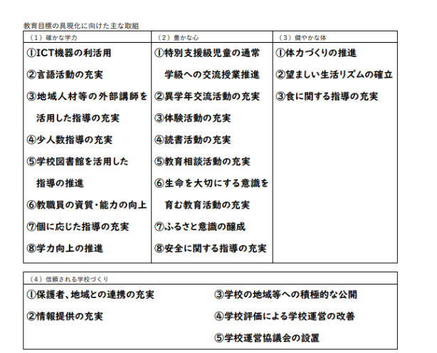 4)地域住民の学校に対する関心が高く、地域全体が学校教育に対して協力的である。