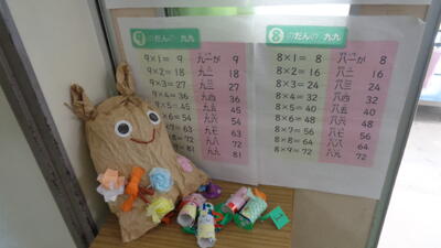 2年生の教室に入る際には、かけ算九九を一段だけ唱えなければ入れません。
