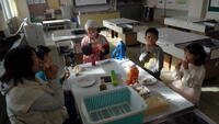 5年生が家庭科の調理実習で、ご飯とみそ汁を作りました。