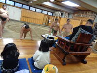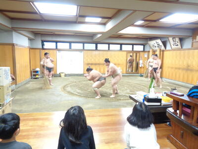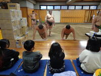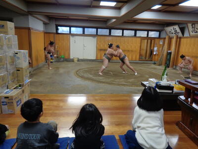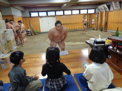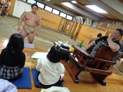 2年生が町探検で、大町小として初めて相撲部屋を訪問しました。