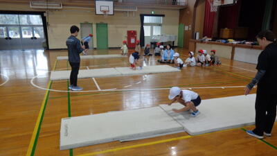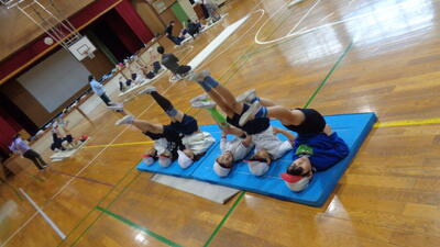 全体に共通していたことは、「お尻を高く上げる」でした。つまり体が浮き上がらないと、前転で前に進まず戻ってしまい、跳び箱では跳び越せないということです。